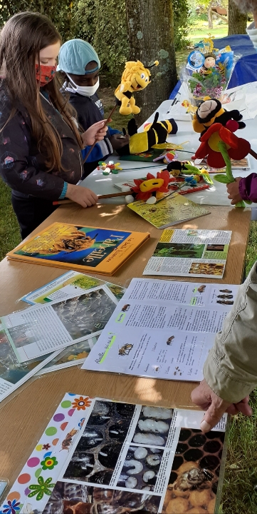 Les enfants « copains du monde », fidèles à leur projet, ont eu l’immense plaisir de visiter les ruches de Germain Gallo ! Cet apiculteur local et enthousiaste, leur a présenté la vie des abeilles,1ères ouvrières de la biodiversité et sentinelles de l’environnement. Dans une ambiance bourdonnante, elles nous ont bien accueillis sous les explications éducatives de notre hôte. Cette sortie s’inscrit dans le cadre de notre projet du « droit de vivre dans un environnement protégé » et a été une belle réussite.