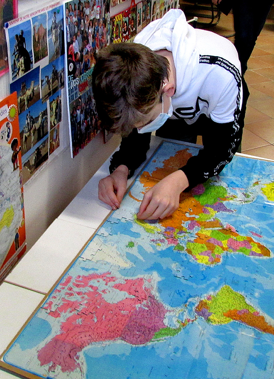 Lors des séances de janvier et février, ils ont démarré la création du maxi « monde des enfants » à partir d’une lampe japonaise. Ils ont aussi reconstitué une planisphère/puzzle grand format. De bonnes nouvelles sont aussi arrivées, par la confirmation d’un prix d’excellence pour la participation de 4 enfants au concours international de dessins lors des jeux olympiques à Pékin (remise du diplôme et du panda/mascotte). Des photos de Madagascar ont confirmé la réussite du projet « écoles vertes », les copains malgaches ont bien pu acheter les outils de jardinage et préparent la terre pour la création des 5 jardins potagers.