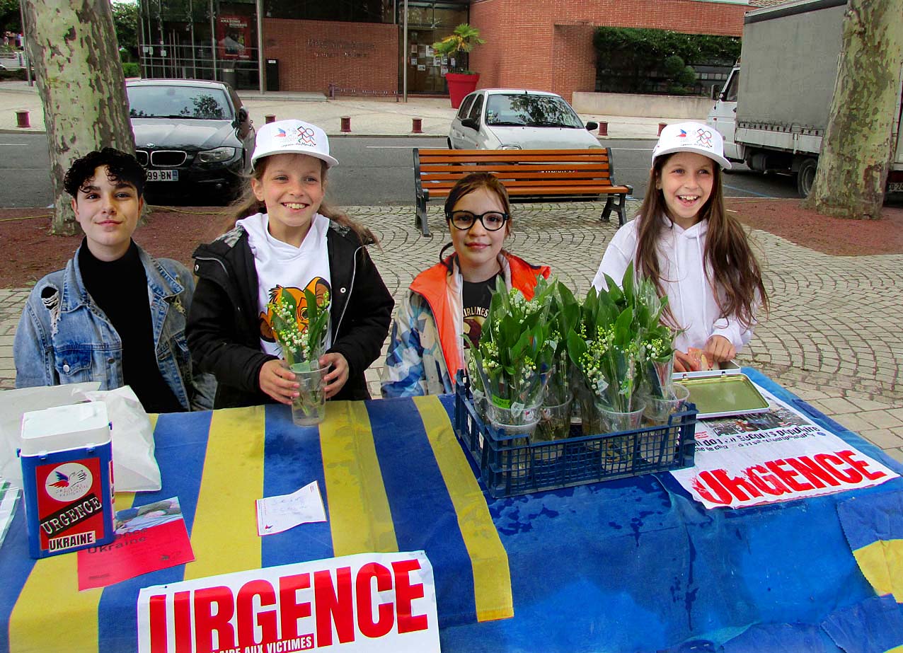 Ces dernières semaines, les jeunes « copains du monde » et leurs animateurs ont multiplié les initiatives pour VENIR EN AIDE A LA POPULATION UKRAINIENNE: collecte financière à la bourse aux jouets, messages d’amitié pour les enfants, recette du concert de Lespinasse, vente de muguet sur le marché.