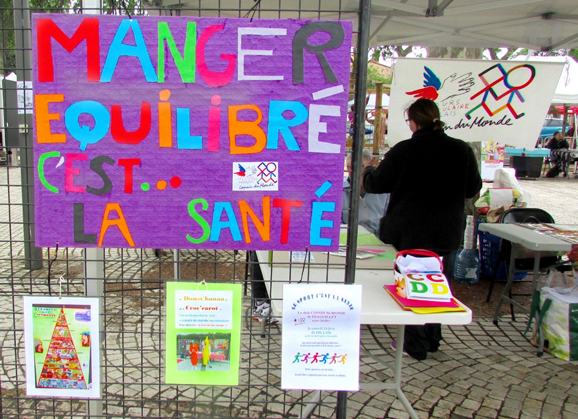 Les enfants et animateurs du club CdM ont participé au « festival nature » municipal le 13 mai dernier. Pour défendre leur projet du « droit de vivre dans le bien être et la bonne santé », ils ont animé le jeu du « croquet à croquer » pour apprendre à manger équilibré, Dous’banan et Croc’carot, nos mascottes, ont déambulé pour rappeler les bienfaits des fruits et légumes, tandis que les plus petits jouaient à reconstituer ces aliments ou manipulaient des marionnettes.