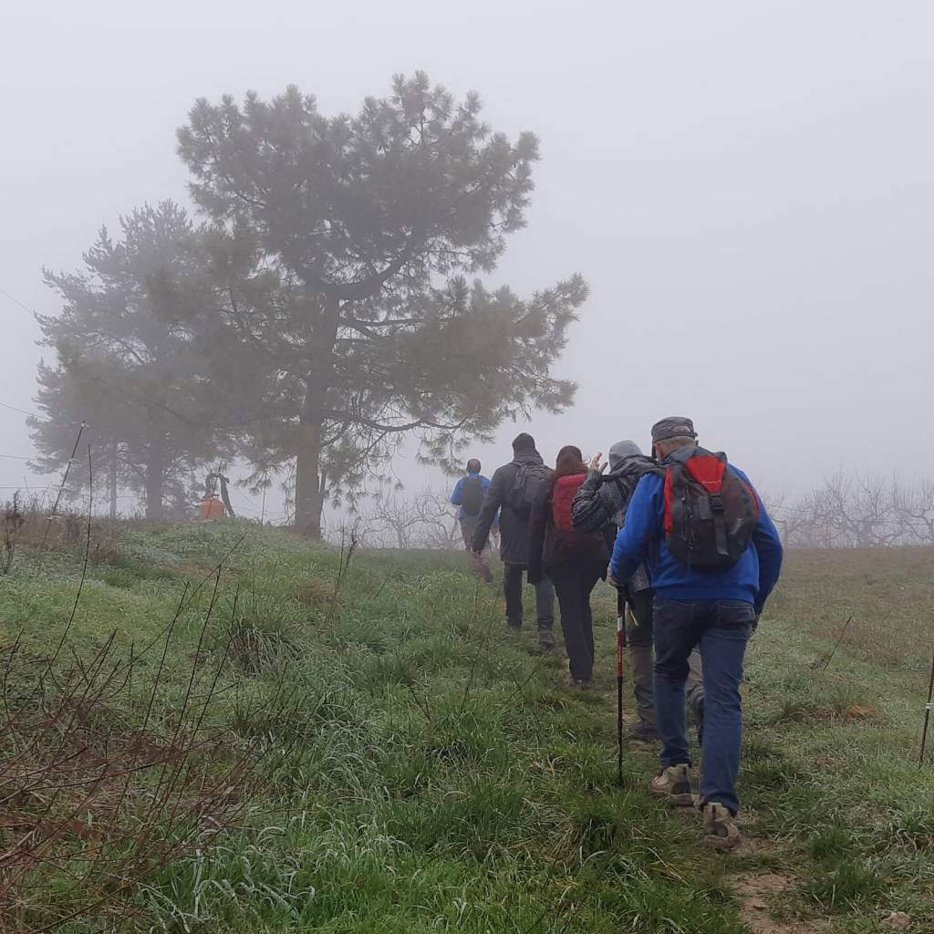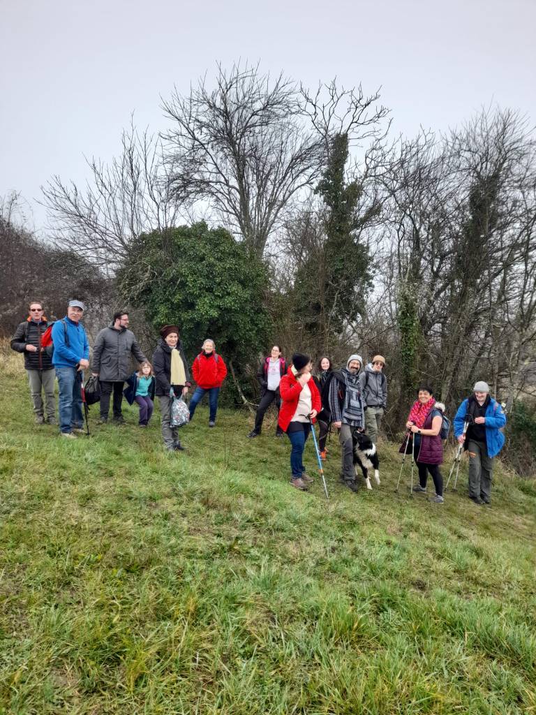 « Ensemble pas à pas dans le brouillard, la lumière venait du groupe »… merci Patrice pour cette belle balade de 13 km à Aussac, dans la campagne vallonnée du Tarn-et-Garonne, avec ses vergers dénudés et ses élevages de canards et d’oies.