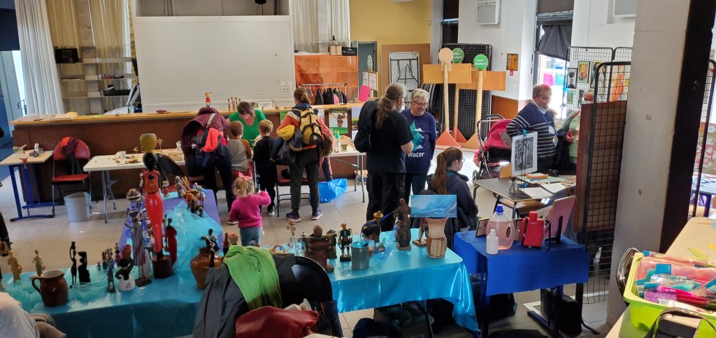 Ce samedi, lors de l’événement « Nature en scène » orchestré par la mairie, nous avons animé un atelier mobiles. Alors que le vent et la pluie se déchainait sur la place de la mairie et que tous les participants pliaient leurs stands, nous avons pu trouver refuge dans la salle Jack Roubin et animer l’atelier préparé avec beaucoup de soin par Jean-François.