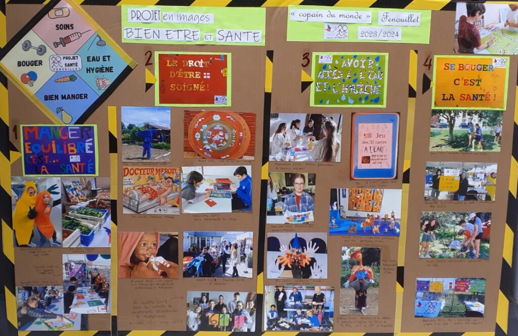 En mode « zen », un panneau récapitulatif a été réalisé pour retracer, en photos, le bilan de notre projet : « le droit au bien être et à une bonne santé » et nous avons aussi terminé notre visuel symbolisant la protection de l’eau.