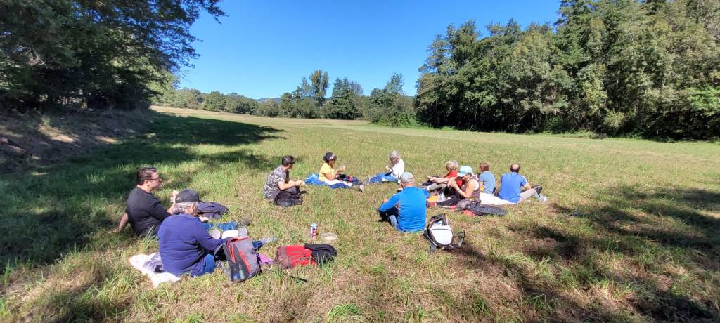 Ce matin du 14 septembre, nous étions 11 au départ de cette randonnée en forêt de Sivens. Nous avons débuté par la Combe du chat longeant le ruisseau de Gourpat. Nous sommes remontés par le bois du Fustié pour rejoindre la ferme des Planettes. Pause pique-nique au soleil dans les prés de Tailles. Après la pause repas, nous remontons dans les bois pour rejoindre le GR 46 en direction de Ramadiesses. Nous quittons le GR au niveau du ruisseau de Sivens et prenons le PR du Clos de Mouysset. Une dernière montée un peu rude nous ramène à la Combe du loup où nous retrouvons la maison forestière de Sivens.