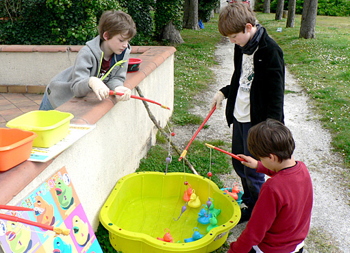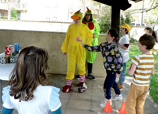 Les enfants du club « copain du monde » de Fenouillet ont préparé cette animation avec enthousiasme. Le matin, ils ont nettoyé le beau jardin arboré qui entoure la maison où se déroulent leurs séances, l’ont décoré et installé les coins d’activités. L’après midi ce sont 24 bénévoles « animateurs d’un jour » (enfants, parents, amis du SPF) qui ont accueilli 75 petits « chasseurs » pour fabriquer leur panier pour « chasser » les œufs, participer aux divers jeux proposés ( sur les droits des enfants et populaires), se déguiser en poussins et rechercher les œufs en plastique dans l’herbe, les fourrés… Après les avoir échangés contre des œufs en chocolat mais aussi une peluche/lapin et un coquetier en faïence, un bon goûter leur a été offert. Pour finir cette rencontre, tous les joueurs ont récupéré les lots gagnés à la « loterie spéciale anniversaire des 10 ans du club ». Rappelons que tous les tickets étaient gagnants!