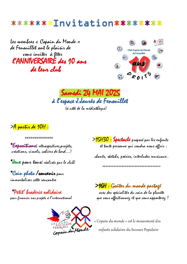Vous qui êtes un enfant « copain du monde »(mouvement d’enfants du Secours Populaire), un ancien membre du club, un parent, un ami, une personne qui nous a croisé lors de nos activités :