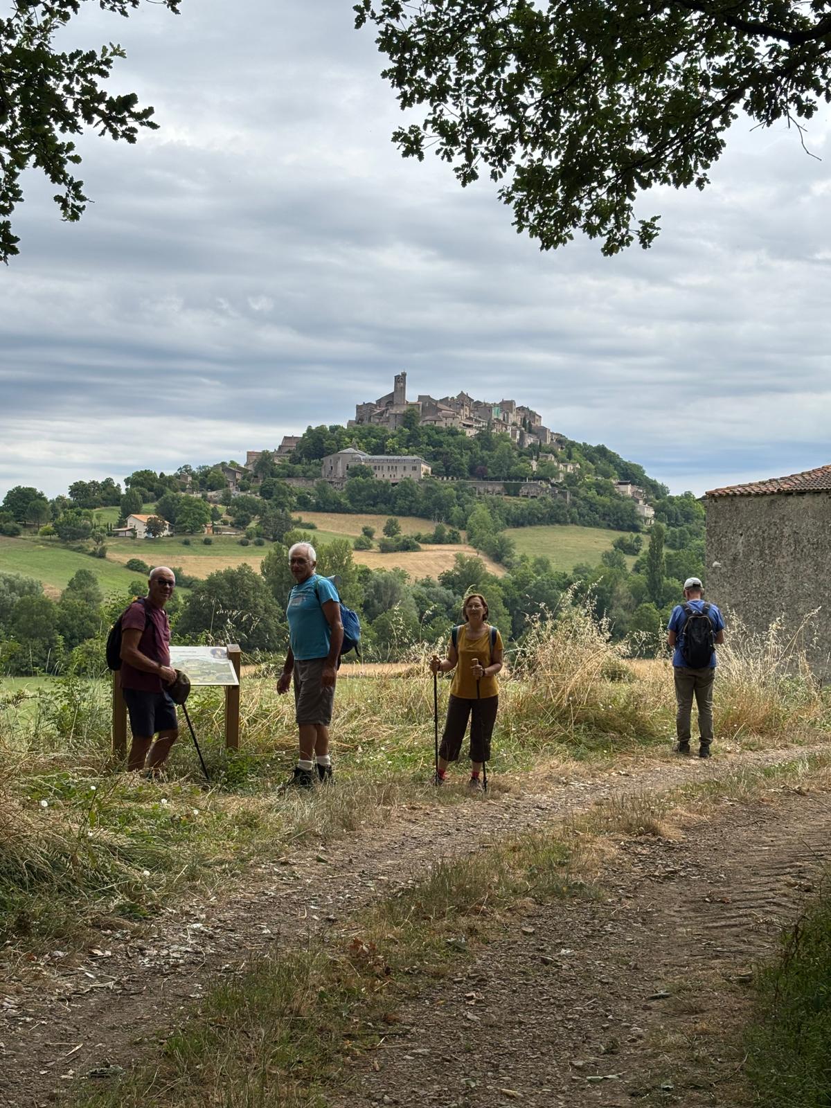 Après trois annulations, nous avons enfin pu faire la randonnée de Souel, petit hameau du Tarn. Nous avons commencé par le chemin de la Garenne, plutôt facile et bucolique, avant d’arriver à une portion de la balade plus difficile et hors pistes. Montées et descentes délicates surtout la dernière 😂 dans les roches blanches typiques du Tarn. Après cela nous avions bien mérité un peu de repos au plan d’eau de Rivière, lieu où l’été des guinguettes sont organisées. De la jonction avec le GR36 jusqu’au village des Cabanes, nous avons pu apercevoir la cité de Cordes-sur-Ciel, comme suspendue dans les herbes blondes. Nous avons alors quitté le GR, juste avant de rentrer dans la cité, par le chemin de la Devèze. Pause pique-nique au jardin royal👍. Reprise l’après-midi par le GR de Pays de Castefer, entre les collines et le causse des Barthès, qui nous a ramenés avec le sourire au village de Souel.