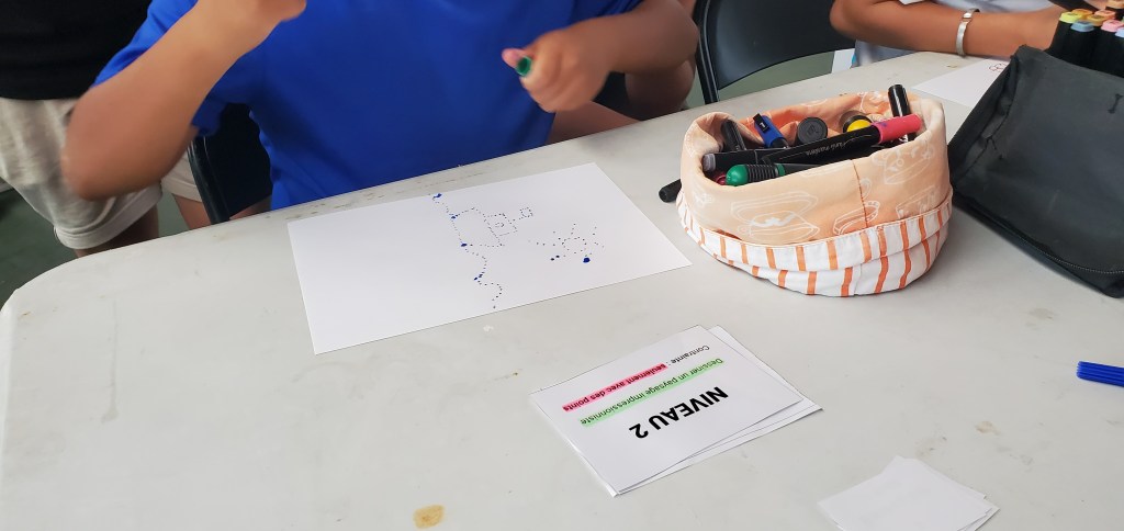 Lors des Olympiades nous avons animé une epreuve sur le thème de l’art. Le but etait de réaliser un dessin en 3mn avec des contraintes spécifiques en fonction de 4 niveaux de difficulté, puis de faire deviner l’objet ou la phrase représenté aux autres membre de l’équipe. Tout le monde a joué le jeux et certains se sont trouvé des talents de dessinateur !