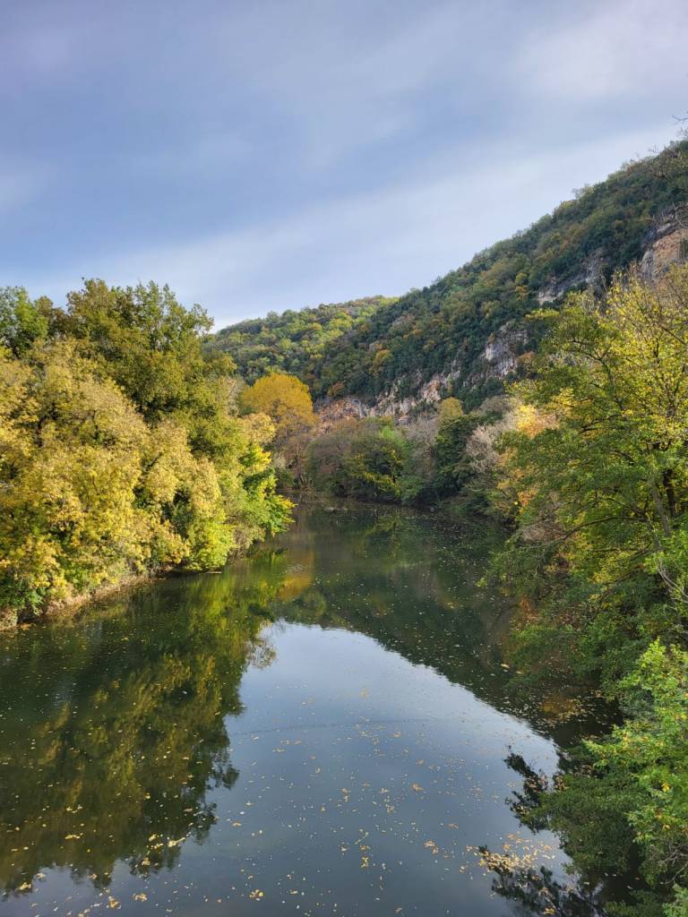 Dimanche 19 octobre randonnée au départ de Bruniquel 13 km 250 m de dénivelé. Nous partons en bas du village pour rejoindre le pont traversant l’Aveyron. Nous entamons une montée par le GR 46 longeant les falaises au-dessus du vallon de la Magdeleine. Le temps est avec nous et les couleurs d’automne nous accompagnent. Une petite halte au pittoresque hameau de Pépénut nous permet de faire la jonction avec le pr de roudolle. Nous cheminons sur le plateau avant de redescendre au bord de la vère pour le pique-nique. L’après-midi nous longeons le bord de l’Aveyron jusqu’au moulin des Estournels.