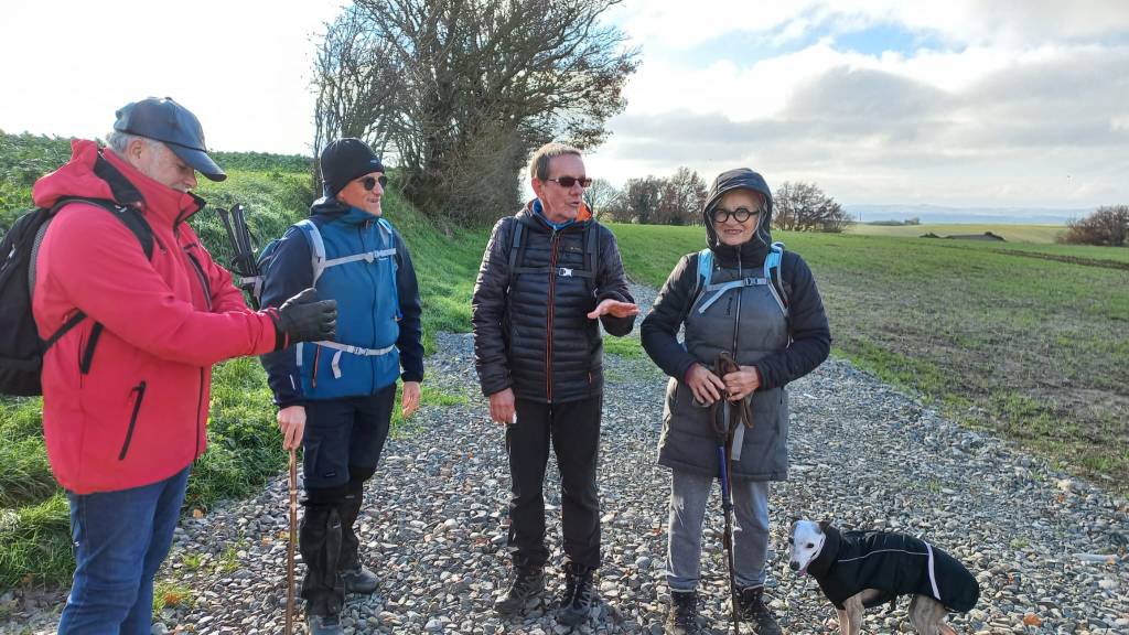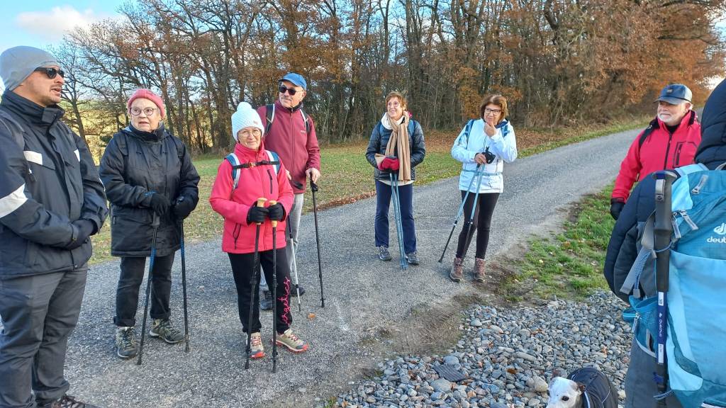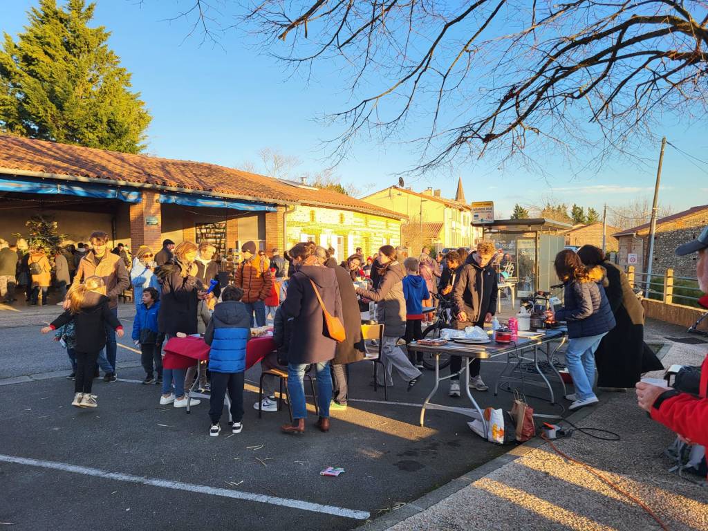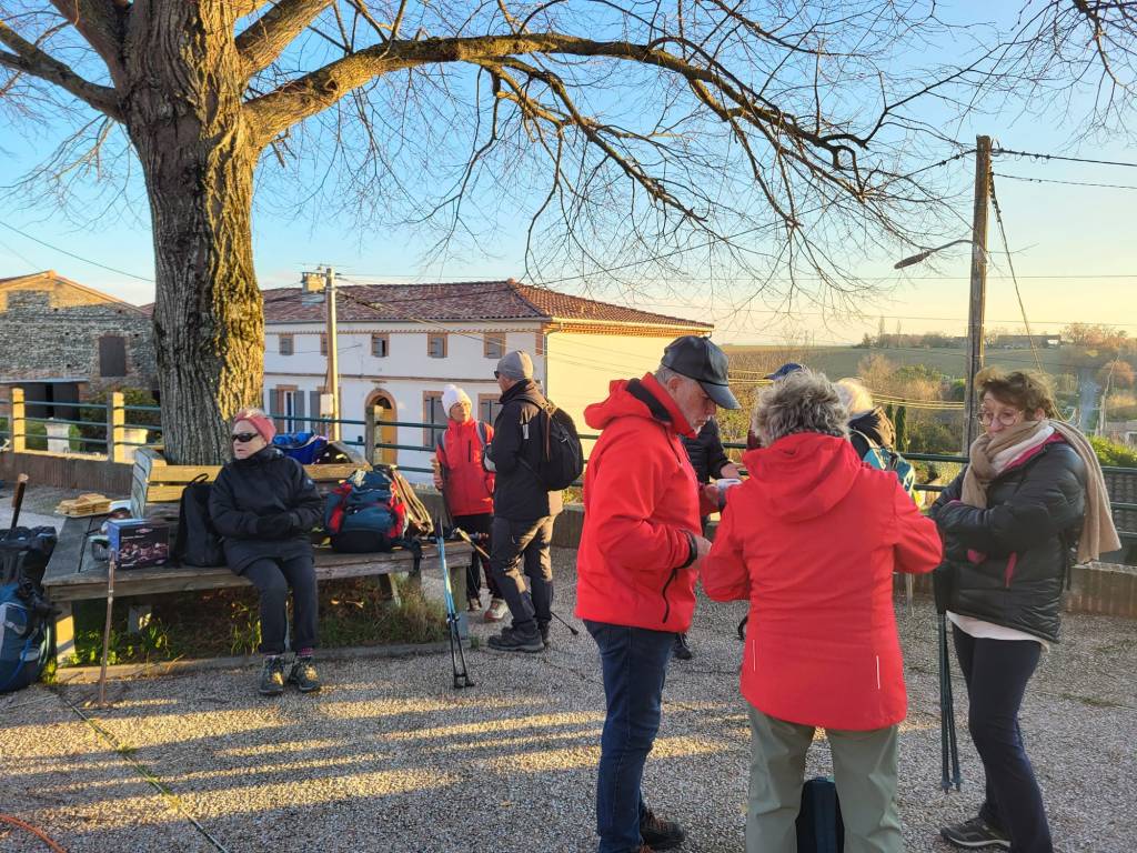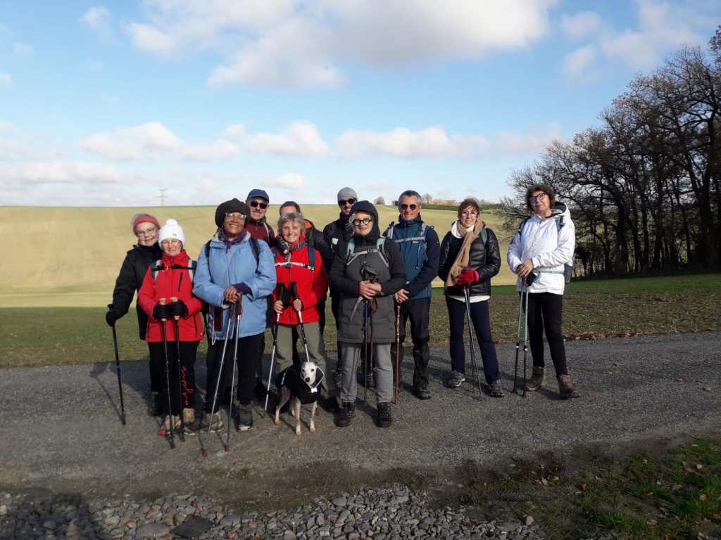 Pour cette dernière rando de l’année nous étions 12 personnes nous avons fait 13 km et 250 m de dénivelé. Nous partons du petit village de Labruyère-Dorsa. Nous sortons rapidement du village et découvrons le paysage du Lauragais. Nous cheminons à travers d’immenses Terres agricoles de collines en collines jusqu’au ruisseau du Massacre, ou une passerelle toute neuve nous attend pour traverser. La faim commence à se faire sentir dans le groupe. Nous faisons halte au bord de l’Ariège pour le pique-nique bienvenue. Après le repas nous traversons le ramier du Moulin, jusqu’au village de Grépiac. Nous retrouvons des chemins à travers champs qui nous ramènent à notre point de départ ou une surprise nous attend. Un petit marché de Noël. Dégustation de crêpes, un petit moment de bonheur