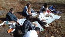 Nous avons profité du beau temps en dessinant et en faisant des croquis en extérieur : nous avons pris comme modèle les arbres et arbustes qui se trouvent devant la salle des ateliers.